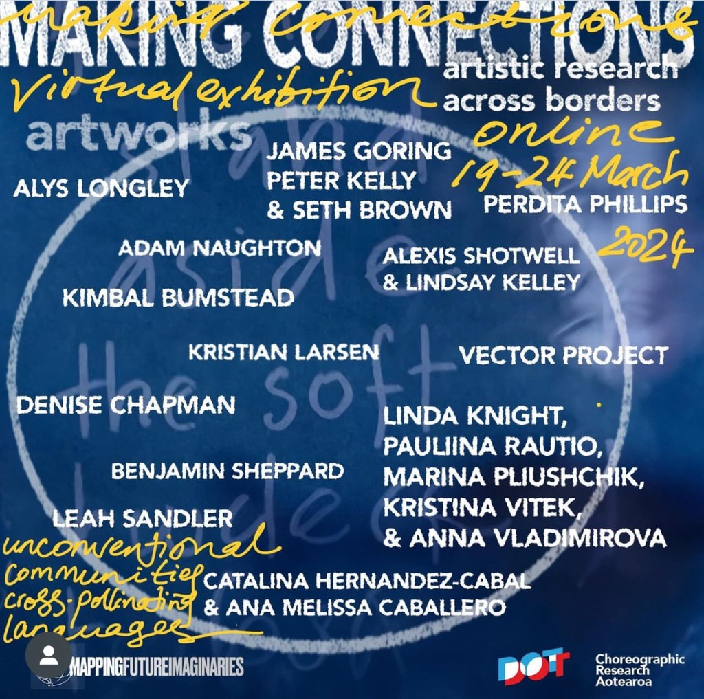 Making Connection: Mapping Creative Encounters occurs between September 2023 – March 2024. The program connects multi-artform artists with diverse global audiences. Through practical collaborative experiences, the MFI and audiences explore ideas and possibilities for creative encounters, the many forms these take, how they are thought about, and how they can enhance social connectivity between people, ideas, place/belonging, ecologies, beings, materialities and more.